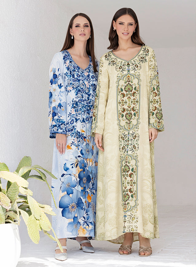 Designed in UAE, every Kashkha jalabiya is a creation of exclusive prints you won’t find anywhere else. Made of luxurious, soft and comfortable fabrics, each piece is carefully handcrafted by skilled artisans, bringing together quality, elegance, and the unique Kashkha touch.